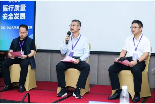 在“医疗质量安全管理”分论坛2,汕头大学医学院第一附属医院院长陈永松分享“地级城市医院向研究型医院转型的求索之路”的探索历程;中山大学附属第三医院副院长黑子清重点介绍“医院医疗质量安全智能管理体系建设”的实践经验;中山大学附属喀什医院院长肖非“以医疗质量为抓手,提升医院核心竞争力”展开系统阐述;清远市人民医院党委书记王贵清详细介绍“信息化建设助力医疗质量持续改进”的创新做法;中山大学中山眼科中心副院长李涛发表题为“携手共进 光明未来--国家眼科质控中心(筹)工作介绍”的主题报告;河源市人民医院副院长丁美祥、哈尔滨医科大学附属第四医院副院长吴江、南昌市第一医院副院长方念“医疗质量安全管理”话题展开了讨论。各位专家通过典型案例剖析和专题研讨,为健全现代医院质控体系、提升医疗安全水平提供了系统性解决方案。