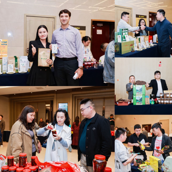 “头雁”产品展现场,来自贵州各市州的特色农产品琳琅满目,绿茶、灵芝、天麻、香肠、豆腐干、樱桃、猕猴桃、金银花、酱酒、民族特色银饰、蜡染布艺制品等令人目不暇接,现场对接交流气氛热烈。