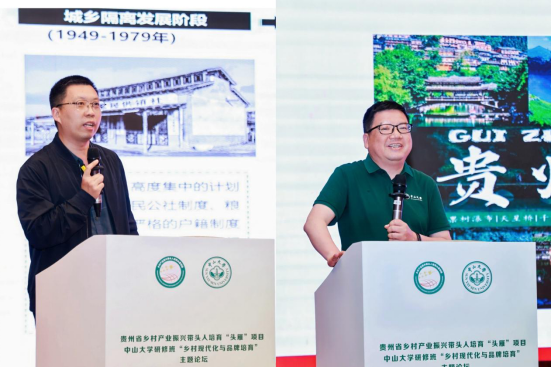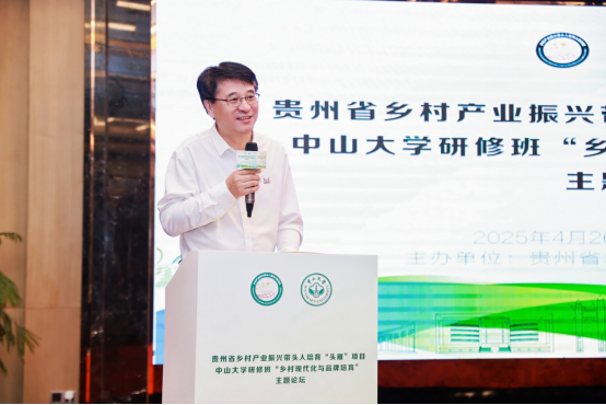 为进一步加强对“头雁”学员的帮扶指导,做好“头雁”培育“后半篇文章”,4月26日,贵州省乡村产业振兴带头人培育“头雁”项目中山大学研修班“乡村现代化与品牌培育”论坛暨联谊交流活动在贵阳举行。贵州省农业农村厅党组成员、副厅长梁玉林,人事处处长、二级巡视员王文虹,中山大学副校长邰忠智,乡村振兴联合研究院执行院长杨忍,公共管理培训中心、大湾区科创中心主任胡清秀及贵州“头雁”导师、学员等共150余人参加了此次活动,活动分为“头雁”我来讲、名师说、产品展及风采秀等环节。