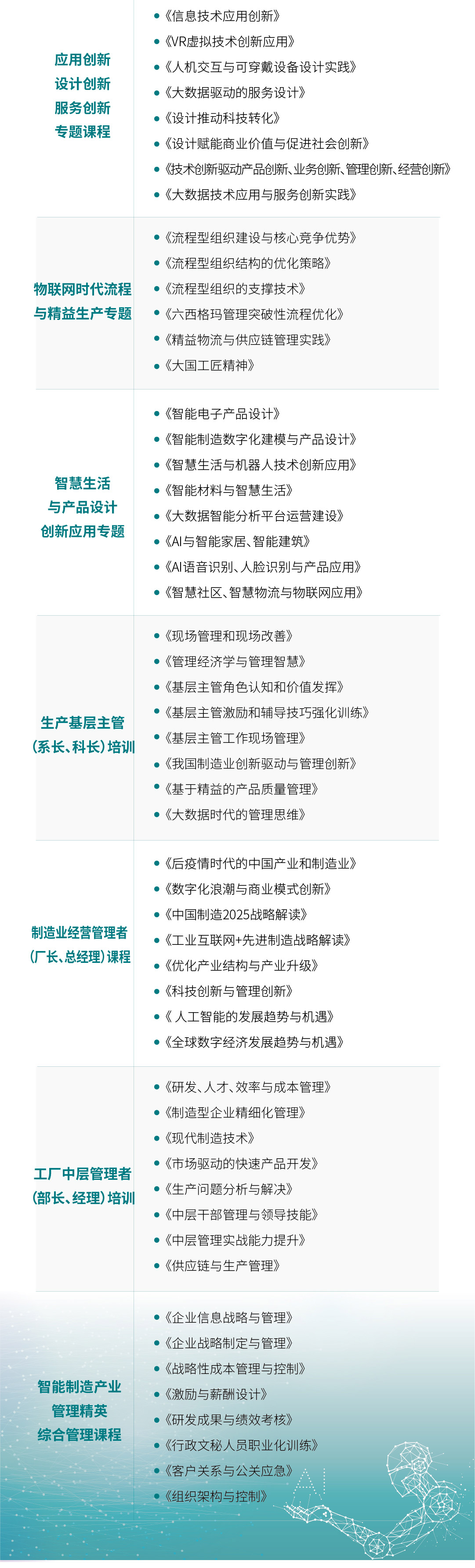 导航痕迹 首页 智能制造定制培训 企业培训 公开课项目 行业定制 数字化转型 国有企业定制培训 通用管理定制培训 高科技&互联网定制培训 智能制造定制培训 生物医药行业定制培训 金融行业定制培训 银行业定制培训 保险行业定制培训 能源环保行业定制培训 烟草行业定制培训 交通物流行业定制培训 房地产行业定制培训 建筑工程行业定制培训 金融定制 创业创新 学习卡 公共管理培训中心 大湾区科创中心 企业管理培训中心 医学教育培训中心 智能制造定制培训